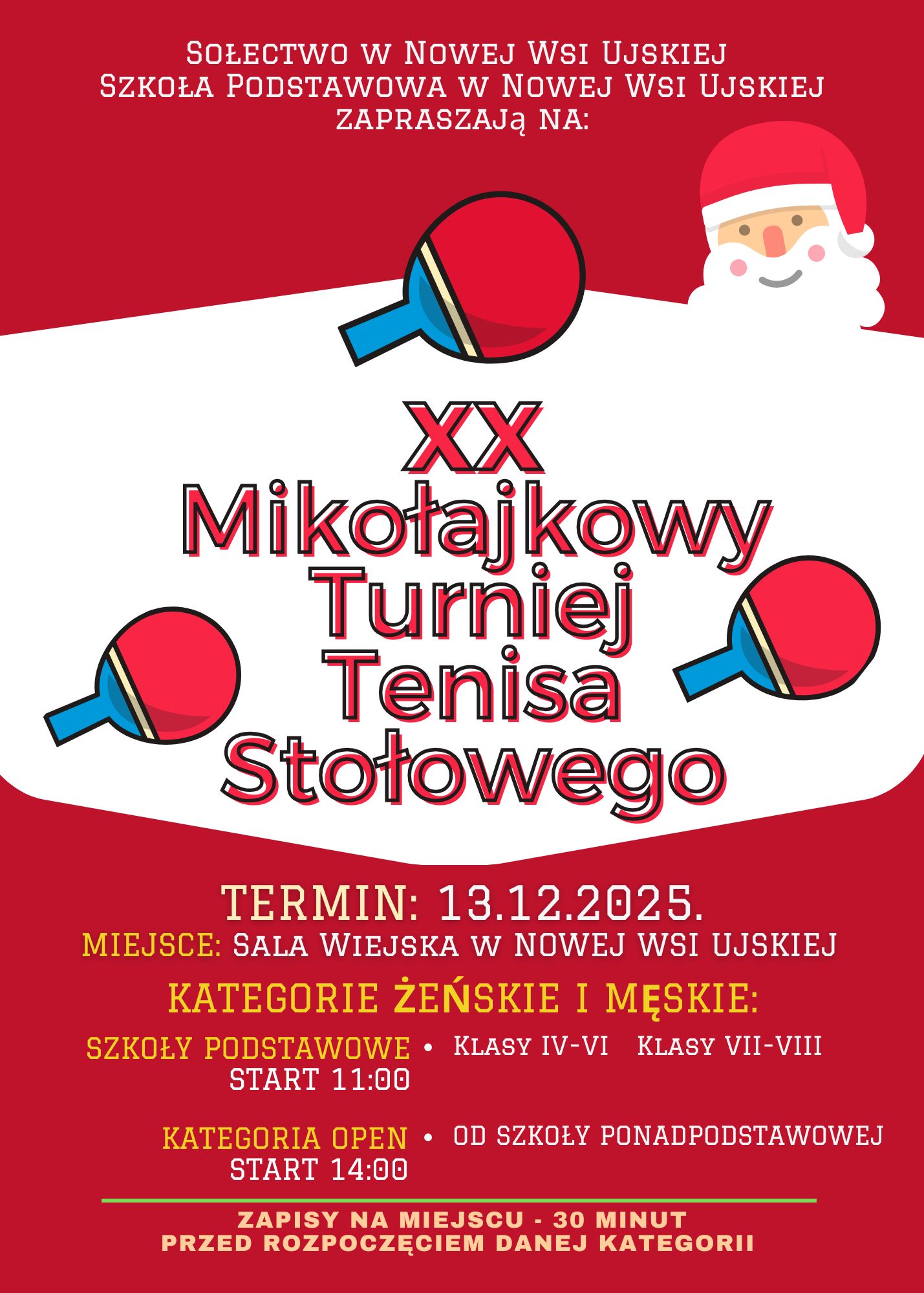 Zapraszamy na XX Mikołajkowy Turniej Tenisa Stołowego!